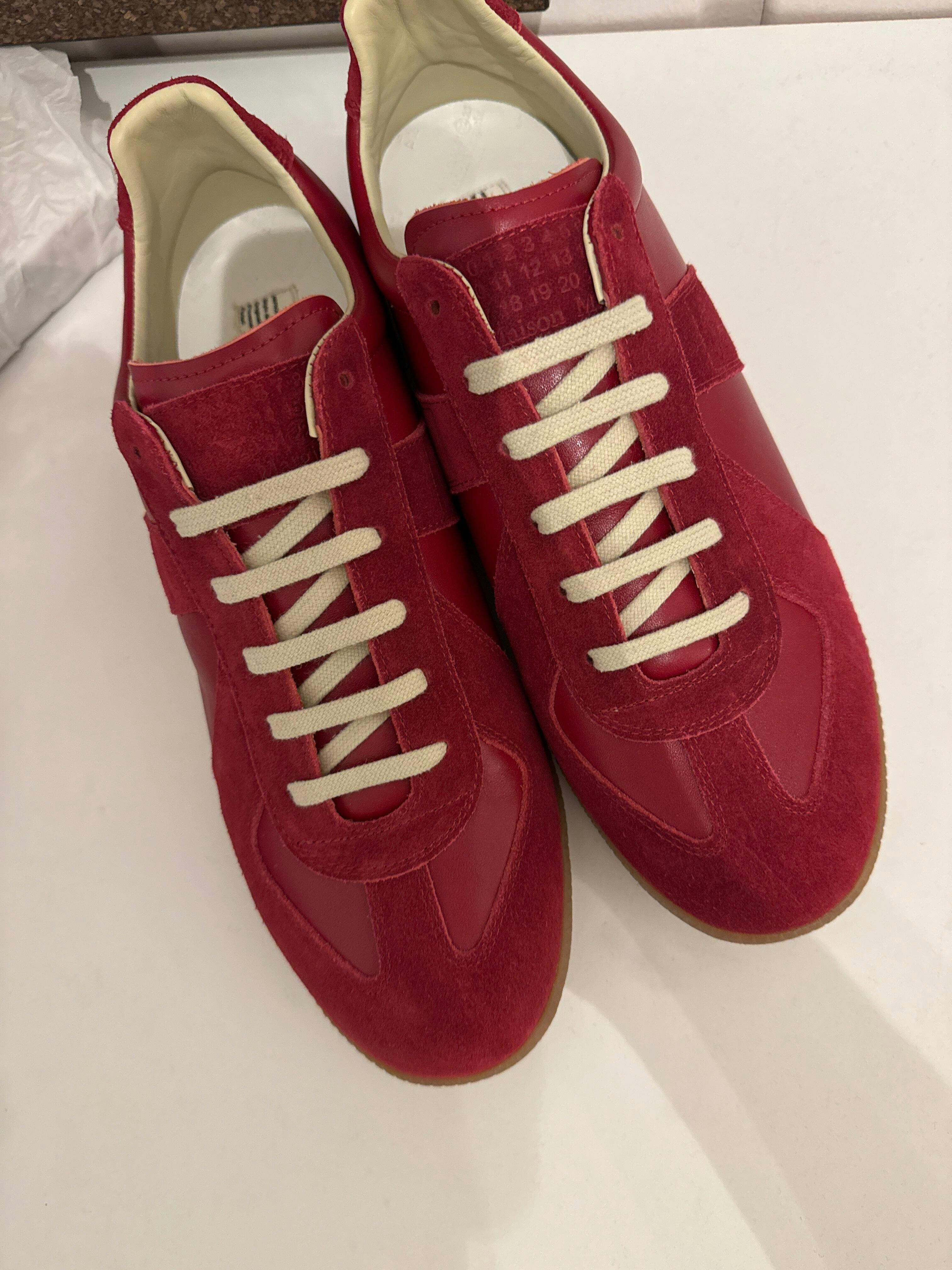 This is the best replica of The Maison Margiela Replica sneakers on the marked. The shoe feature a blend of nappa leather and suede complemented by a honey-toned sole. Drawing inspiration from Austrian sports footwear of the 1970s.